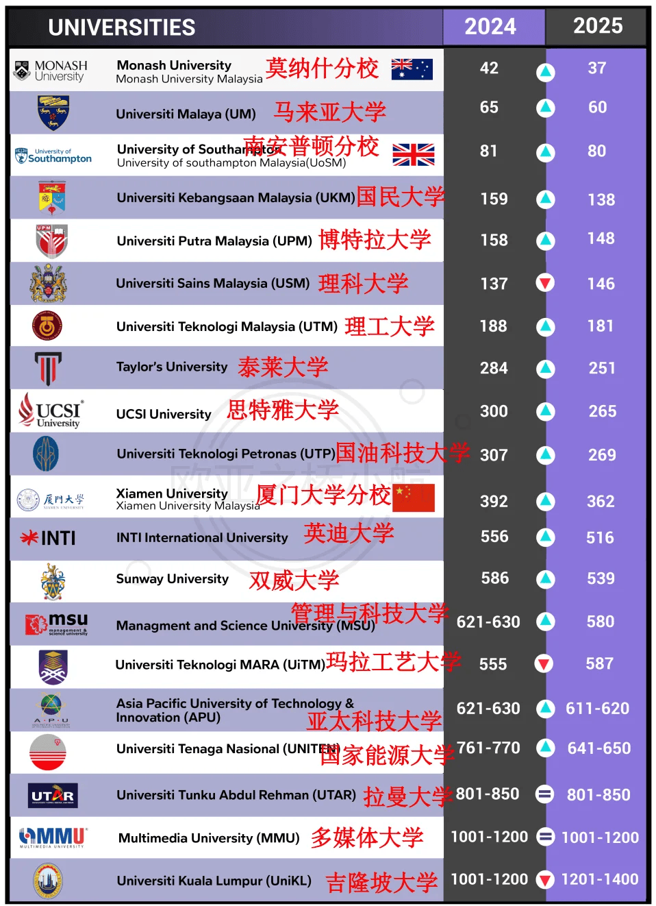 ? 顶尖大学扎堆:马来亚大学(UM)、国立大学(UKM)、理科大学(USM)……都是东南亚TOP级此外高校,QS排名妥妥的世界前列!